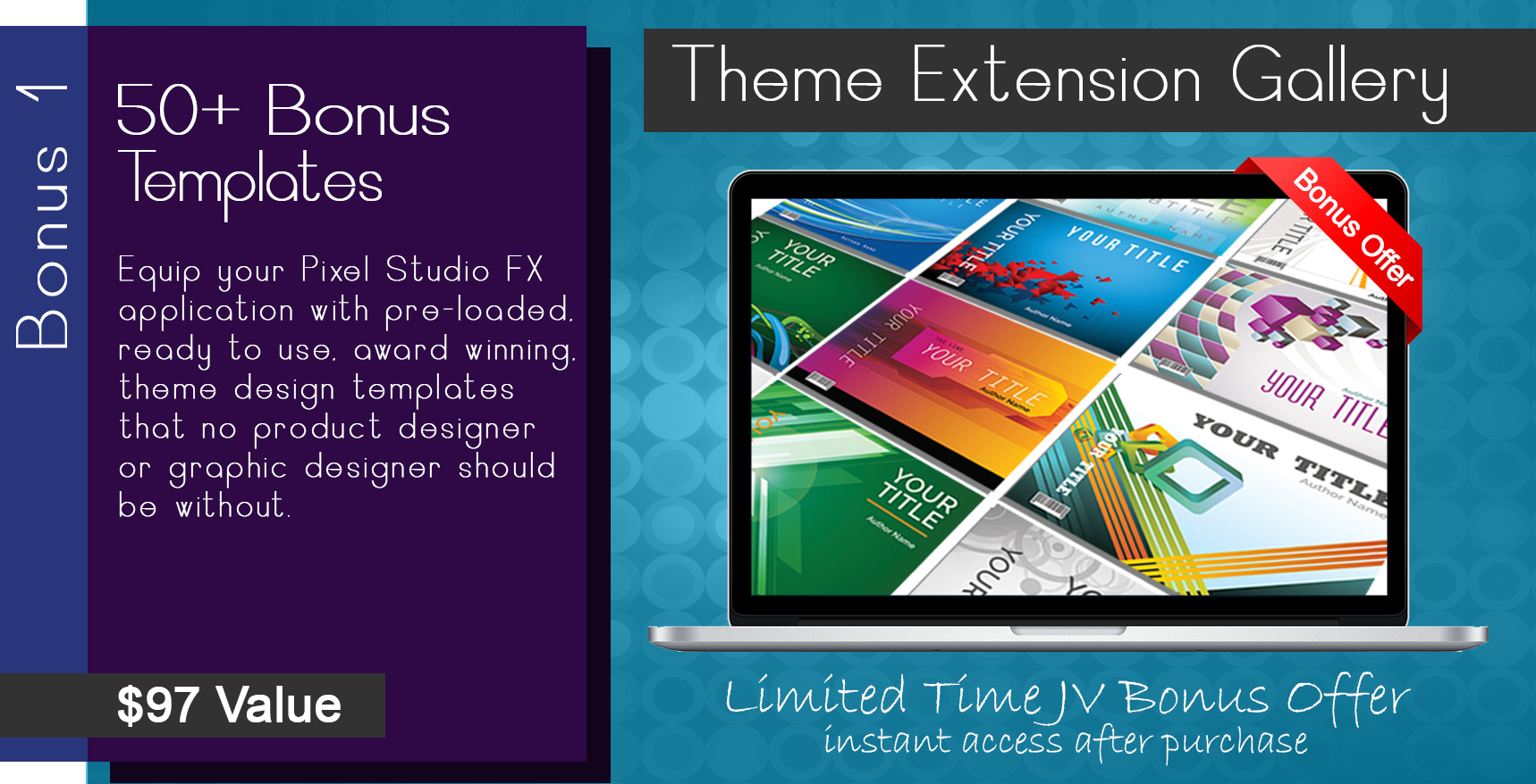 The Theme Extension Gallery comes packed with 50 bonus theme templates for Pixel Studio FX. These templates are expertly crafted to cover a wide variety of niches. These bonus templates can also be applied across all existing cover models, making them a must-have for your PSFX Library.