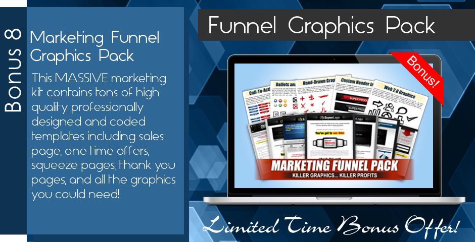 This MASSIVE marketing kit contains tons of high quality professionallydesigned and codedtemplates including salespage, one time offers,squeeze pages, thank youpages, and all the graphics you could need!